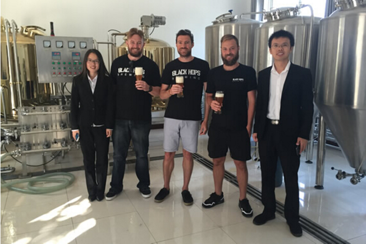 This 2000 liter brewery equipment is one of the systems we exported to Australia in 2015. The owner is Black Hops Brewing operated by three boys full of passion. They originally brewed their craft beer at local contract microbrewery. As the growing demand for their beer, they decided to setup their own microbrewery plant in Australia to realize their caft brewing dream. It is an independent brewery and will distribute beer to local bars, restaurants, clubs etc. This microbrewery system includes 20hl brewhouse, 10hl half batch fermentators, 20hl single batch fermentors, 40hl double batch fermentors, 40hl brite beer tanks and complete wort pumps, glycol chilling system, controlling panel, manual beer bottling machine. It is regarded as a turnkey brewery plant.